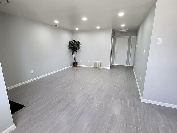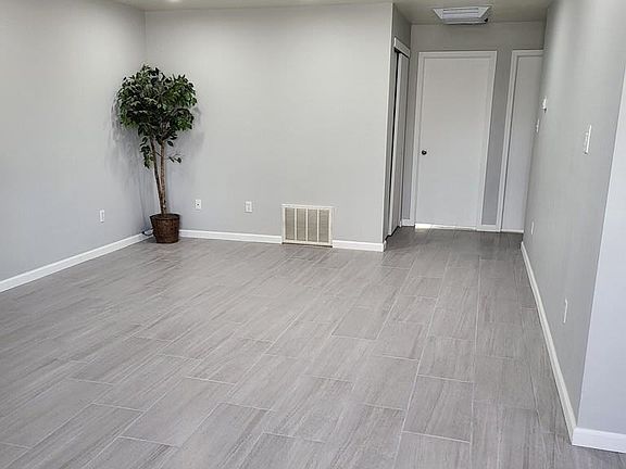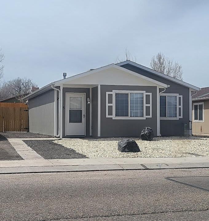 Charming remodeled two-bedroom, one-bathroom home featuring a xeriscaped front yard for low maintenance. Upon entry, step into the well-lit living room adorned with LED pod lights and a ceiling fan. To the right, discover the inviting dining area and kitchen equipped with essential appliances including a refrigerator, dishwasher, electric range oven, and built-in microwave. Adjacent to the kitchen is the convenient laundry room, complete with a split washer and dryer that come with the home. The primary bedroom boasts a spacious walk-in closet and access to the backyard through a sliding glass door. The second bedroom offers tiled flooring, attic access, and another walk-in closet. Enjoy the xeriscaped backyard featuring a covered patio and wooden fencing, perfect for outdoor relaxation. Throughout the home, tiled floors provide durability and easy maintenance. Recent updates include fresh paint on both the exterior and interior. Additionally, the home features a Roof Evaporative cooler for added comfort.