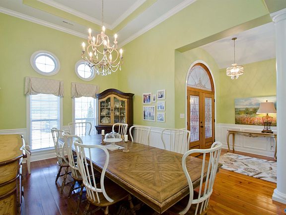 - Features: 10’ + Ceiling, Crown Molding, Tray Ceiling(s), Wood Floor, Wainscoting