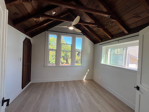 - Fully remodeled apartment in the heart of Elmwood, one of the best areas in Berkeley. - All work finished Fall 2024. New everything. New kitchen, new bathroom, new windows, new flooring, new electricals, new lighting, new paint. - High ceiling and vaulted ceiling throughout. - Upstairs unit in a 4-unit building. Unit is located in the back that is quiet and with views from all the windows. Plenty of natural lights. - Flexible layout, can be used as two-bedrooms or 1-bedroom. It has a separate living room, full kitchen and a full bathroom. - Plenty of common outdoor space. -15 mins walk to Cal Campus and plenty of transit options nearby. Elmwood shops just 1 min away. - Unit just finished remodel. Getting painted right now and all appliances will be installed this week. Will have updated pictures soon. Application can be through zillow or paper form, please text or call me before applying. - No application fees from landlord. - Off street secured Parking is available for no extra cost. - Laundry facility on site dedicated for this unit. - Owner pays for water, hot water and garbage service - Tenants pays for PG&E. There is no gas appliances in the unit. - Unit is Sonic fiber internet ready. - Parking space is available.