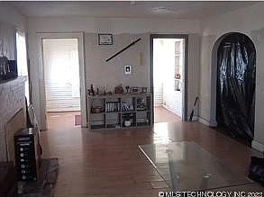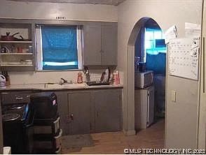Cute little window house on the west side of Muskogee right off highway 69. Home will need some tlc but has endless potential!! Perfect for a rental or first time home. Fireplace in the front area and a sun room to the side two bed rooms in the back with one bath in between the bed rooms. Home offers a working attic fan in the hall. Updated pluming, a new toilet, as well as an updated hot water tank. New front door and threshold, new light fixtures and some other small electric work has been done. Small shed in the back for more storage that also has gas, electric, and water hook ups it. With a little TLC this will be a perfect little gem!