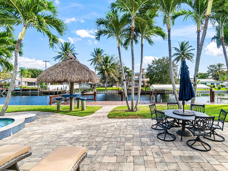 Welcome to Tropic Palms! This luxurious 2 bedroom, 2 bath house has it all: kayaks, hot tub/pool, fresh bass fishing, BBQ, and eat-in kitchen as well as a safe and family-friendly neighborhood. This home boasts porcelain tile floors throughout, quartzite countertops, upgraded kitchen and baths, generator hookup, impact windows and doors and a beautiful open floor plan. The spacious Florida room can easily be converted to a third bedroom. Plus enjoy a beautiful sunrise or sunset on your own private dock with outdoor patio and long gulf stream views. Continue to rent this home seasonally or enjoy for yourself in this family friendly home.