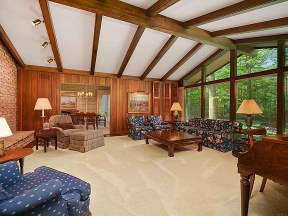 Stunning mid-century modern ranch in prestigious Covington Lake Estates situated on a 1.85-acre lot with private, park-like views from every room. Impeccably maintained by the same owner for over 30 years, this timeless floor plan is the perfect balance of style and comfort. Entertain with ease on the scenic patio when the season allows or gather for the holidays near the two inviting fireplaces, the open dining area, or wine bar. Chic hardwood floors in the living room and a wall of windows for plenty of natural light. Custom Grabill kitchen with dramatic ceiling and skylights, new Bosch dishwasher, double oven, and ample storage space for the resident chef. Separate laundry room with deep sink. Three bedrooms, 2 full baths, and 2 half-baths all on the main floor allows everyone their roaming room. The unfinished basement is perfect for all your storage needs and/or hobby room. Be sure to see the workshop off the garage through the double doors! Don't miss this gem and your chance to own this one-of-a-kind property. Note the new roof in 2018, new HVAC in 2015 has 2 zones, new gas hot water heater in 2015.