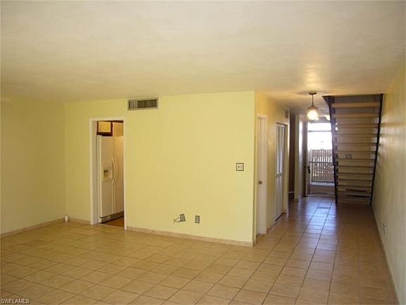 One of the lowest priced townhouses in Cape Coral, only $62/sqft. Completely repainted, cleaned up and ready to move in. It's in 55+ community located centrally in Cape Coral on Del Prado Blvd S, South of Veterans Bridge, close to stores, restaurants, gas stations and Walmart. The first floor is all tiled, has a square and large living room, large formal dining room, half a bathroom, kitchen and utility room with W&D. The second floor has two separate master suites with walk-in closets and 2 balconies. The front has a small fenced relaxation and grilling area, the rear has an open porch with a view of the pool area. It's great for an older professional single or couple or a retired couple.