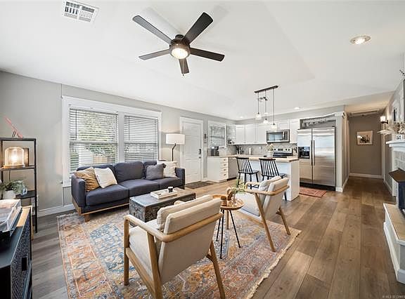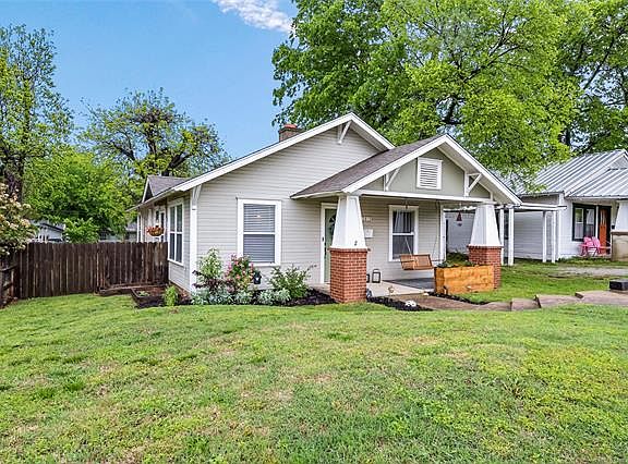 Charming Craftsman bungalow across from TU! Newer construction features open concept living, 2 bedrooms with private baths, office with half bath, and detached 2 car garage. Parking in front and back, back patio for entertaining, and inviting front porch with swing. Inside utilities plus refrigerator & stackable W/D stay. Must see!