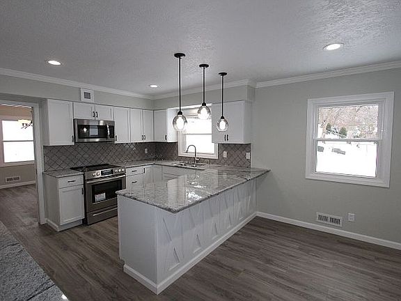 Location, location, location!! This four bedroom home has been updated from top to bottom! New roof, windows and siding plus a new driveway. The kitchen has all new cabinetry and granite countertops, and all three of the bathrooms have been remodeled. New interior and exterior doors, all new flooring, lighting, and trim. The main level has a kitchen, living room, dining room, family room with fireplace, half bath, and laundry. The upper level has four large bedrooms, and two bathrooms. There is a rec room in the basement.