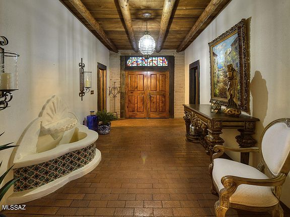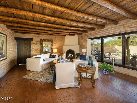 Truly charming classic Arizona burnt adobe territorial home sits on 2.2 acres w/ magnificent mountain views in the heart of the old Foothills. A lovely foyer entry w/custom mesquite double doors invites you into this exceptional home w/ 2,672 sqft. The spacious living area encompasses an exquisite great room w/ beam ceilings, elegant fireplace, walls of picture windows, brick floors, light & open kitchen w/ mesquite cabinets and mesquite countertops, refrigerator, pantry, 4 bedrooms including master w/ fireplace plus an executive study w/ built in bookcases, beautiful tile floors and custom wooden doors & shutters throughout. Enjoy the lovely backyard w/ covered brick patio, pool, spa, oversized 2 car garage w/ storage room, lush desert landscaping, Dist 16 schools majestic mountain view.