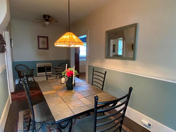 Quiet small town location. Very well maintained, with many updates, windows, siding, septic, roof. 3 Bedrooms, one large bathroom, featuring spa tub and separate shower. Hand crafted kitchen cabinetry, with original wood floors. Formal dining room with wall furnace for additional heat source if there is a power outage. Main floor bedroom, setting room or office, located right off the living room...all with painted pine floors and high ceilings. Spacious laundry/mud room, great storage area, which leads to large rear deck. Upstairs is two large bedrooms, setting room and landing....unique to this era of home. Covered front porch. Along with 24x48 insulated and heated garage with tall ceilings. Good solid home!