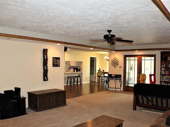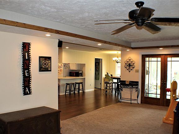 Enjoy the open floor plan with the over-sized den joining the dining & kitchen. Some of the many updates include paneling removal, painting, flooring, some updates in bathrooms & kitchen, lighting, & energy efficient double paned windows. The master offers a half bath & separate shower room with a sauna. The large covered back porch gives a view to the back yard. The approximate 440 SF workshop sits to the side of the yard with concrete drive access. It has built-in shelving & an overhead door.
