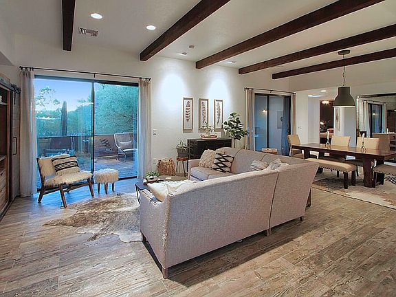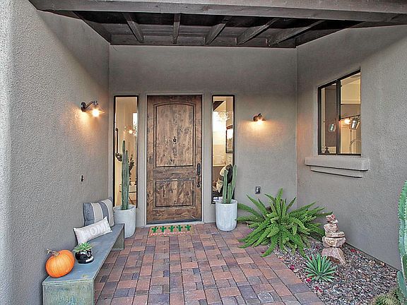 Absolutely stunning almost new contemporary home in perfect Central location! Beautifully appointed w/meticulous detail. Light & bright split plan loaded w/custom upgrades, quality fixtures & high end finishes throughout. Huge great rm w/wall of windows, gorgeous porcelain plank tile & unique wood beamed ceilings. Gourmet kitchen w/beautiful cabinetry, slab granite, stainless steel appliances & gigantic island w/breakfast bar. Spacious master suite w/his & hers closets, luxurious bath w/granite, dual sinks, lg linen closet & beautiful tiled walk-in shower. Separate den/media rm off master w/concrete tiled fp & access to private patio. Extended covd brick rear patio backs to natural desert arroyo for ultimate privacy. No detail left undone-you haven't seen one like this before!