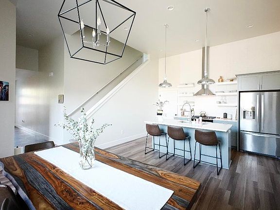This home offers 3 bedrooms and 3 bathrooms, plus bonus room above the garage. Fully fenced, modern design with 13' ceilings, quartz counters, SS appliances, LVP flooring and radiant floor heat.Located across from Riverstone Park/Pond and sidewalk to the Centennial Trail and River! Enjoy all the amenities of Riverstone! Maintenance-free living! Also built to achieve US green building council LEED and Energy Star certifications!