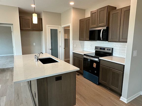 Custom New Build (Morgan A 1313). 4 Bedrooms, 3 Baths with Luxury Vinyl Plank Flooring, Quartz Countertops, Stainless Steel Appliances, Large Eating Bar, Walk-in Pantry, and Main Floor Laundry. Master Bedroom with Private Bath, Double Sinks and Walk-in Closet. Full Daylight Basement with Finished Rec Room, 4th Bedroom, and 3rd Full Bath. NO SPECIAL TAXES! General Taxes and Room Dimensions are estimated. All information deemed reliable but not guaranteed.