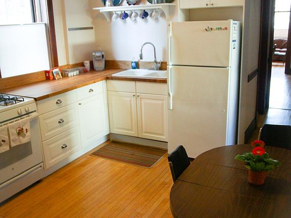 This furnished first-floor walk-up, is in the heart of the Logan Square neighborhood. It is steps from the Blue Line Logan Square train station and blocks from I90/I94 expressways. Walking distance from popular dining and vibrant entertainment spots. The apartment has two-bedrooms with queen and full-size beds, one bath and one office. It has beautiful old-world details, from the claw foot tub to the built-in hutch, but has been updated with new plumbing and electrical. It is a beautiful space, walking distance to everything you need and a short train ride to downtown. Dedicated laundry facilities and bike storage in the basement and small yard for gardening and relaxing. Radiator heat and window A/C units. Owner pays for water, tenants pay for all other utilities, including electricity, gas, phone, cable, internet, etc.