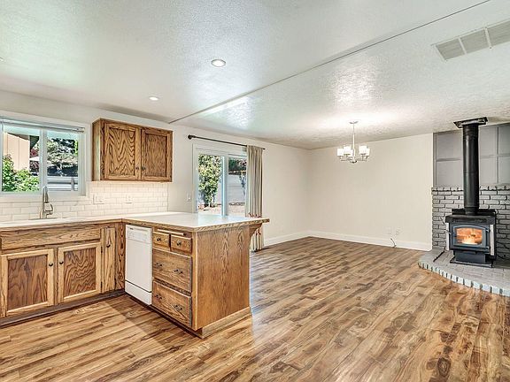Charming single level home located in Bend's mid-town, the popular Orchard District. This well maintained and upgraded home is located on a large fully landscaped lot with mature trees and a beautiful fenced backyard. The spacious well-planned kitchen is open to a large dining area, with a slider to the patio. The home has an electric heat pump/AC unit and pellet fireplace. In addition to the large garage, there is a covered boat/RV area. Among the many upgrades are subway tile showers and back splash, new light fixtures, window blinds, master closet built ins, LED under cabinet lighting, new fencing, and all new flooring. Washer, dryer and refrigerator are included. This immaculate home in excellent condition is ready for its new owners!