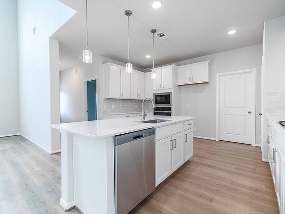The exciting, two-story Hayden home offers plenty of flex space with bright and airy rooms. Upon entering this home, you are greeted with the stairway to your second floor, as well as your convenient downstairs powder bathroom and entry to your private study room. You can opt to turn the study room into a bedroom if you need extra space for guests. Traveling down the foyer, you will be captivated by the open-concept layout that flows from the two-story family room to the inviting dining space and spacious kitchen. This area boasts a ton of options such as an appealing fireplace for your family room, and an extra sink in your kitchen to serve as a wetbar! This layout is perfect for entertaining gatherings of any size. Your kitchen also comes with attractive features like sleek granite countertops, ceramic tile backsplash, industry-leading appliances, and a kitchen island! Right off the kitchen is entry to your walk-in utility and your two-car garage. You can even add on extra space, turning your garage into a two-and a half car or three-car garage! For those that love spending quality time with family outdoors, the Hayden plan gives you the ability to include a sizable covered patio in your backyard. Back inside, you are met with your deluxe master retreat featuring a huge walk-in closet and a divine master bathroom. Your master bathroom features dual vanities, a bathtub and a stand alone shower that you can transform into a super shower if you desire. Head upstairs where...