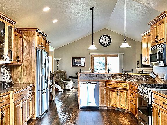 Immaculate home in Promontory Point! This open concept, ranch style home has plenty of space with 5 bedrooms, 4 bathrooms, and just over 3,800 square feet. The kitchen has custom oak cabinets with pullouts, stainless steel appliances, gas range, an eat-in kitchen peninsula, great storage space, built-in desk, and is open to the dining room and living room. The living room has a vaulted ceiling, gas fireplace, and patio door which leads to the deck and beautiful backyard. The front entry has a nice sized coat closet. The master suite has a large walk-in closet, large bathroom with a whirlpool tub, large shower, custom oak vanity and mirror, dual sinks, and ceramic tile floor. Off the garage entrance is a ½ bathroom and laundry room. There are two additional bedrooms and a full bathroom with a linen closet on the main floor. The basement has all daylight windows. The large family room has a gas fireplace and is open to the separate rec room. Off the rec room is a hobby room, which is currently used as a workout room. Off the family room is the hallway to the two bedrooms and full bathroom. You wont have to worry about storage, as there are two linen closets and a large storage room off the family room. Throughout the home you will notice the custom window coverings and 6 panel oak doors. The heated garage is 1,100 square feet and is completely finished with oak cabinets and countertops with sink, hot & cold water, epoxy floor, floor drain, overhead storage racks, and 12' high ceilings. There is a sidewalk from the side of the garage all the way to the back patio and deck. The yard is beautifully landscaped with many perennials, shrubs, trees and an underground sprinkler system. Other features of the home include a high efficiency furnace, high capacity air filter, humidifier, recirculating hot water system, and a 65 gallon hot water heater. Don't miss out on this picture-perfect home!