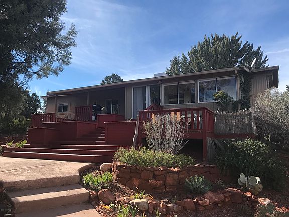 Enjoy beautiful red rock views from this charming home in a quiet West Sedona neighborhood. No HOA and is currently a very successful vacation rental with all furnishings included in the price. Older home with a new roof installed in 2016, new natural gas furnace & new air conditioner in 2019, new gas hot water heater in 2017, and new front deck in 2019. 2 bedrooms with a beautifully updated bathroom, enclosed porch off the living room for your year round enjoyment. Due to the age of the mobile will require an all cash transaction, and there is no sign on the property.