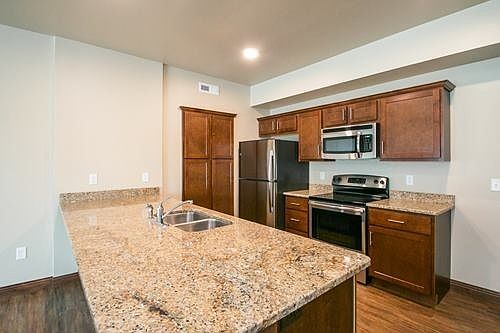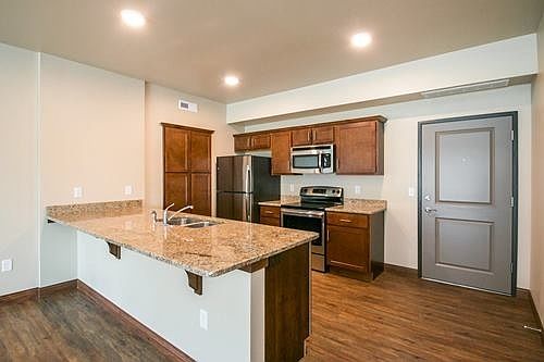 High-end luxury condominium with a great West-side location. Covered underground parking with elevator access to all floors. Each unit has a private deck / balcony. Interior finishes include granite kitchen countertops, LVP flooring in the kitchen, dining are and living room. All units have stainless kitchen appliances and washer and dryers in the unit. All Photos of a Similar Property.