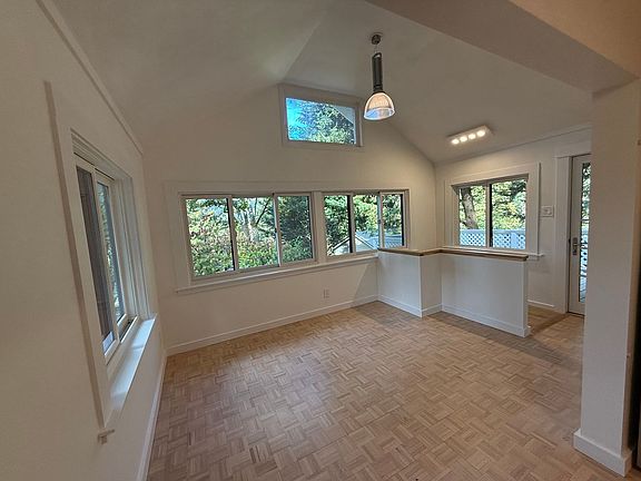 Unique, secluded and extensively remodeled 1925 cottage on a wooded, low traffic street! Don't miss the change to call this peaceful & secluded home your own! This home is located at the end of SW Illinois Street. It is surrounded by lush, mature trees, and plenty of unique plants. You will fall in love with the outdoor space on this property! With multiple decks and patios surrounding the entire home, you have endless options for entertaining and indoor/outdoor living. The home has been meticulously updated with modern and minimalist design. It has original and refreshed natural maple hardwood flooring throughout with updated appliances, new windows, and several custom design touches. Walk up to your new home through the covering of mature trees. The wrap around deck/patio will guide you to multiple entrances. Entering through the front door, you will be greeted by high vaulted ceilings, skylights, ample windows, and real Maple Parquet flooring throughout. The great room consist of two living spaces, perfect for a living room and dining area, an office nook, and a kitchen. Your new kitchen features upscale stainless appliances, including a gas oven/stove top, range, refrigerator, and a small dishwasher. Solid wood cabinets, tile backsplash, and under cabinet lighting create the perfect ambiance for your new kitchen. The hall will lead to your bathroom. This modern and minimal design features heated marble tile flooring, a floating sink, and a shower head. Continue down the hallway to your primary bedroom, which features custom closet armoire and a door to your back deck. The washer/dryer are conveniently located in the hallway across from your bathroom, with a stackable Bosch washer and dryer. Your additional bedroom is located off the living room and also features a custom built-in desk and closet/armoire. The outdoor space is what makes this home so unique, with two decks, and a lower covered patio, you have woodsy views, filled with mature trees and a few neighboring homes. This space is perfect for outdoor entertaining and creating the perfect outdoor living space. This home will leave you feeling at one with nature, while still being conveniently located close to shopping, dining, and city amenities. Minutes from Hillsdale town Centre, Multnomah Village, downtown Portland and OHSU. Nearby Parks include Hillsdale City Park and Gabriel Park. Close to dining, shopping, and entertainment. **Open Application Period 10/18/2024** Visit our website to apply and view other homes we have available! Do you need property management services? Maximize your income and cut your costs!