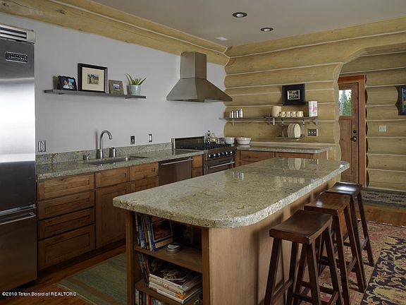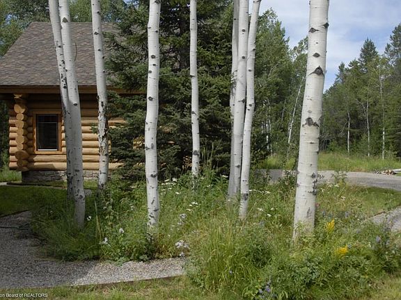 Situated on a half acre, bordering open space and national forest, this private and quiet home is a beautiful retreat for a vacation buyer or year-round resident. Located in an established neighborhood that was once the River View Ranch, the neighborhood has beautiful trees, abundant wildlife and trail access both to the Snake River and Bridger-Teton National Forest. The home is a relaxed style with a commercial-style kitchen and open living space that leads to a covered outdoor deck. All of the sinks are under-mount for easy care and cleaning. The master bedroom is on the main level along with the kitchen, living area, laundry room and half bath. The 2nd floor has 2 large bedrooms each with their own bath. A small TV room was designed to accommodate the upstairs rooms. The detached garage is over 1,000 sq. ft. and has a beautiful and sunny partially finished garage apartment, subject to Teton County approval. Seller is a Wyoming real estate licensee.