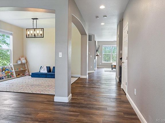 Welcome to Steeple Rock Drive! This home has the full luxury feel from the very first steps in the front door. You are welcomed into the home with a front living area and dining room (used as a play room right now). You have a bright office and half bath for your guests on the main level. The living room has brand new built in features and gorgeous tile on your gas fireplace! Your kitchen is gourmet and has plenty of storage! You have a large island that is perfect for hosting and has the space you need to bake anything you want! Your laundry is on the main level and connected to the garage. The garage is made for storage with 3 cars fitting easily and has a 4th spot as a tandem. The upstairs has two bedrooms on each side of the wide hallway. In your primary bedroom, you have a kitchenette built in with plenty of storage. Put a coffee bar or wine bar there! You have a five piece bath with two separate vanities in your primary bathroom. One bedroom has its own en-suite bathroom and two bedrooms share a full bath as a Jack n' Jill. This home doesn't end there, it has a full unfinished basement with an added sump pump, and radon mitigation system! The backyard has been well maintained and has brand new edging! New roof, sliding glass door, and gutters in 2023! Come see this beauty and call it home!
