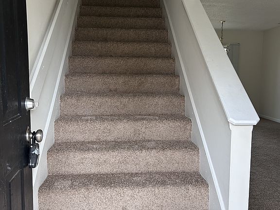3 bedroom 3 bath two story home with a small bonus room. Bedroom one is large downstairs room. Bedroom 2 is upstairs master with private bathroom. Bedroom 3 is upstairs with access to a hall bathroom. Carpeting throughout. Cute front porch, sliding glass doors lead to a quiet patio.