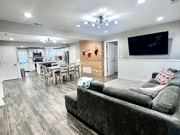 Beautifully updated home conveniently located on a quiet, tree lined, residential street just minutes away from 80/294, public transportation, shopping, and so much more. Featuring an open-concept floor plan designed for entertaining, the house boasts a dedicated entryway leading into a seamlessly flowing living room, dining room & kitchen, all of which are adorned with wood look plank porcelain floors, wainscoting throughout the walls, modern fixtures, and an eye-catching accent wall. The kitchen is a highlight, showcasing quartz countertops, stainless-steel appliances, white shaker style cabinets with crown molding, spacious farm sink, herringbone floor pattern, and a newly installed island. The modernized bathroom offers both a rain shower & a tub for the ultimate relaxation experience. With three bedrooms with ample closet space & recently installed carpet flooring. A spacious laundry room with a side-by-side utility room. Major updates including framing, plumbing, electrical, roof, energy efficient windows, & insulation are only about 2 years old. If you desire additional space for hosting guests, you'll appreciate the patio located at the rear of the house, offering plenty of room for grilling & relaxation, along with enhanced privacy courtesy of the surrounding fence. Don't miss out on this perfect home - Schedule your private tour today! This house will not last long!