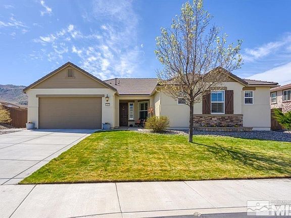 Sellers are now offering a $10,000 buyers credit to be used to buy down the interest rate, closing costs, or fees, etc!! Welcome to this absolutely stunning, mountain view, and sophisticated single story! Nestled in the highly sought-after Damonte Ranch Foothills, this masterfully upgraded home showcases abundant open-concept interiors, large windows adorned with Hunter Douglas Plantation shutters throughout. This turnkey haven provides ample room for both entertaining and day-to-day living, flowing seamlessly into the large kitchen, where you’ll adore having stainless steel appliances, granite countertops, and an oversized breakfast bar. Enjoy new GemCore Stone Composite Flooring, four large bedrooms, three full baths, and the convenience of a three-car tandem garage. From the moment you enter, it's evident that this home has been meticulously cared for, with every detail considered to ensure comfort and elegance. A low-maintenance xeriscape backyard showcases a stamped concrete patio and a custom designed raised patio. Don't miss your chance to experience the unparalleled beauty and charm of this remarkable home. Spacious lot and has future RV potential. Equipped with two HVAC zones, this home ensures optimal comfort year-round. Revel in the plush carpeting underfoot in the bedrooms, offering a cozy retreat from the hustle and bustle of daily life. With showings available with just a one-hour lead time, don't miss your chance to experience the unparalleled beauty and charm of this remarkable home. Make it yours and embrace a lifestyle of comfort, convenience, and sophistication.