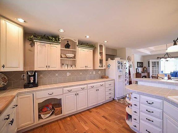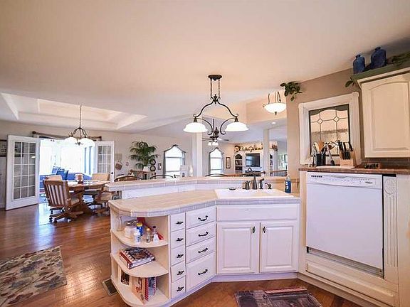 Allow us to open the door to this custom built 3 bedroom 2.5 bath ranch style home. Located on just under 2 acres. An open floor plan highlights many unique features such as vaulted and trey ceilings, bullnosed corners, sunken living room with gas fireplace and custom built-ins. A spacious kitchen features kraftmaid easy close cabinetry, tile countertops and matching backsplash, full appliance package and overlooks the living room, dining area and enclosed porch. The over sized Owner's suite includes vaulted ceilings, private bath with 2 walk-in closets large soaking tub and walk-in shower. A full finished lower level offers the perfect spot for entertaining which features a media room, large rec room, kitchenette with wet bar area,Island, refrigerator, 2 additional bedrooms which share a Jack & Jill style bath. Hot tub is neg