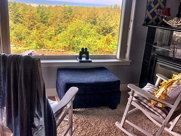 Million dollar view! Rare 3 bedroom/2 bath ground floor, end unit with patio. Stunning ocean view from main living & master bedroom. New interior paint, plush wall to wall carpet, huge master en-suite with sitting area & patio. This is more than a summer beach place, your own one car heated garage and you'll stay cozy year round with propane fireplace. No rental restrictions in complex. Trails to beach right outside your door. Watch eagles soaring and whales breaching from your window!