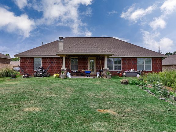 Full brick home situated on 1/2 acre, 4 bedrooms, 2 full baths, pantry in kitchen with stainless steel appliances, breakfast area + eat-at bar, recessed lighting, fireplace in the living room, private bath & trey ceiling in the master bedroom, 2-car attached front entry garage, covered back patio and spacious back yard.