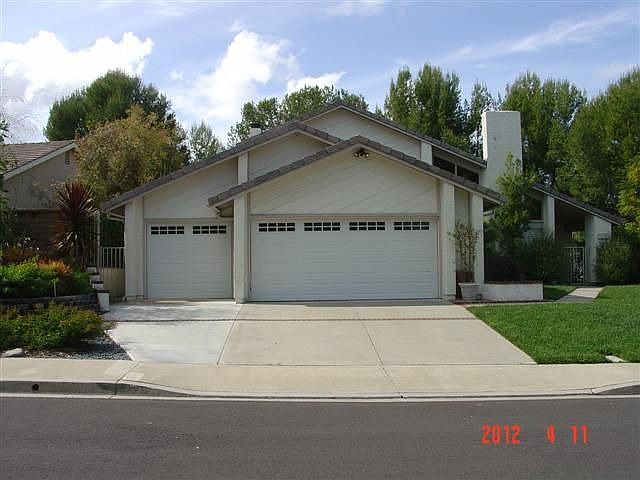New paint highlight this two level home on a corner lot. It features 4 bedrooms (one down), plus a living room and family room - both with fireplaces. It's in move in condition (although it does not have upgrades). Kitchen features black/stainless appliances and white tile counters with tile flooring. The backyard has a covered patio (there is a balcony off the master bedroom) plus a firepit in the side yard and gates on both sides of the home. The third car garage appears to be an add-on, and the buyer must verify if permitted.