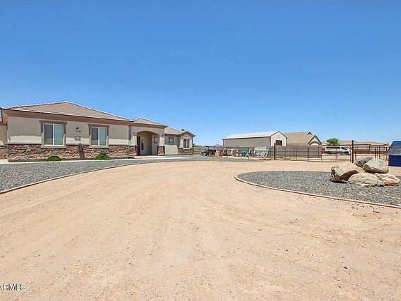 Do you want to get away from the city life? This home on 1.266 acres is truly a gem in San Tan Valley. Enjoy the stars and the wildlife along with mountain views. The home is open floorpan and very spacious. Large kitchen island with tasteful beautiful countertops and cabinets opens to large family room. Split floorpan. Stunning primary suite with garden tub, large walk in closet and shower with 2 rain shower heads. Large den, good size secondary bedrooms, hall guest bath and secondary bath. Check out the huge backyard with animal view fencing. Say ''hello'' to the donkey, horses and pigs which are also available. Spacious 4 car garage so bring your cars, your quads and all your toys! Plenty of space to add tiny home or park your RV.