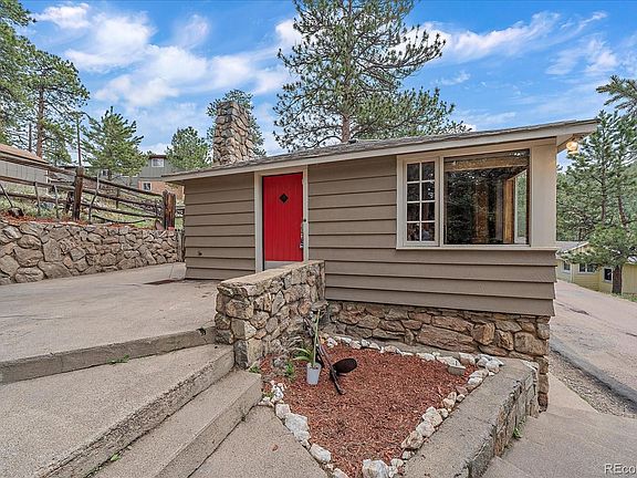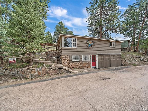 An affordable, mountain home in the heart of Evergreen doesn't happen very often. The spectacular location of this home makes it a must have! It sits a block above the quaint downtown boardwalk and world-famous “Little Bear”. Take a few steps down the hill to enjoy the amazing small town ambiance Evergreen has to offer- enjoying the shops, restaurants, and events. No need to drive - you can walk down to Evergreen Lake for summer concerts, boating, fishing or hiking or skate the lake in the winter. This home has 3 bedrooms, 2 on the main floor and one in the lower level that could also be an office. A small laundry room is also on the lower level. The kitchen, dining room and master bedroom have big, brilliant windows from which you can watch a surprising amount of wildlife year round. The patio next to the front door is a wonderful space to gather with friends or just enjoy the trees, bird song, and fresh air. Custom built ins in the master bedroom and dining room are so convenient. You’ll find that this home has an amazing amount of storage for it’s size! There is a street level garage with additional parking on the street. The shed in the back yard has 220V electricity to it for a great workshop or studio with a built in workbench and storage. The County records do not include the addition of the master bedroom and the dining room to the rear of the home.