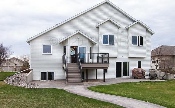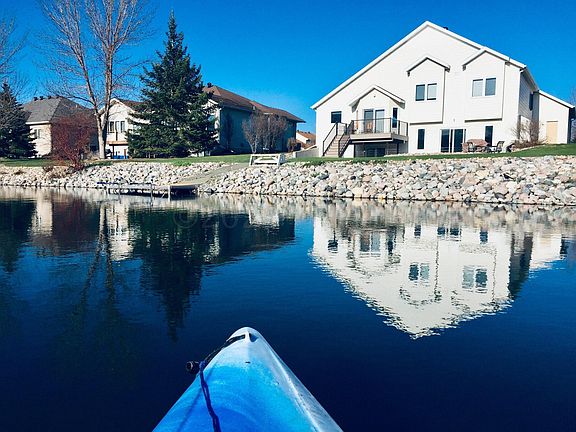 Imagine waking up in this Beautiful Home on Bluemont Lakes. Enjoy your coffee overlooking your private dock and small boat tie up or soak up the morning sun on the upper deck. You could also chose the lower walkout patio with its East view and privacy. The main floor has lots of windows and the wide open floor plan adds to that lake feel right in the center of Fargo. The main floor has a sunken living room, cathedral ceilings, and formal dining and stays full of sun into the evening. The comfortable and cozy lower level family room has a walkout to the patio, a gas burning fireplace, a half bath and the 4th Bedroom. When the weather turns cold retreat to the Theater Room with its custom sound system. The upper level has a Master Suite with jacuzzi, two additional bedrooms and a full bath