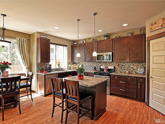 Welcome home to this exceptional 4 bed, 2.5 bath home which has been meticulously maintained - Pride of ownership shows throughout. Home boasts an open concept with beautiful finishes throughout, granite slab, surround sound speakers, Microwave/Convection oven. Upstairs you'll find a spacious master suite complete with a generous 5 piece en-suite jacuzzi tub and pass-through fireplace & walk-in closest. 3 additional bedrooms and laundry conveniently located on the second floor. Fully fenced backyard with hot tub & patio = the perfect place to entertain. Flag lot at the end of the quiet cul-de-sac next to the community park with a neighborhood trail behind. Easy access to I5, I405, Boeing. You won't want to miss this one!