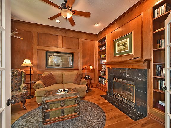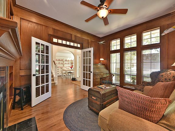 Charming house on a green belt! House is open and spacious and has been updated with loads of amenities! Wide plank hickory wood floors, thermal windows, new carpet, 6" base boards, custom wood coach house garage doors, trex deck, fenced back yard, storm shelter! The 10' ceilings on the first floor compliment the spacious open floor plan. Family room is a wonderful size and has built in bookshelves, a two way fireplace and an incredible view of the gorgeous backyard. Study shares the two way fireplace and is stunning with its wood paneled walls and built-ins. Huge bay window in dining room! Kitchen is perfect for cooking and entertaining with beautiful counter tops and updated stainless steel appliances. Roomy master bedroom/bath has a walk in closet, hot water circulating tub, and private outside deck. Upstairs you will find three nice sized bedrooms and 2 baths. The backyard is treed, private, beautifully landscaped. Neighborhood has a pool. This house will not last long!