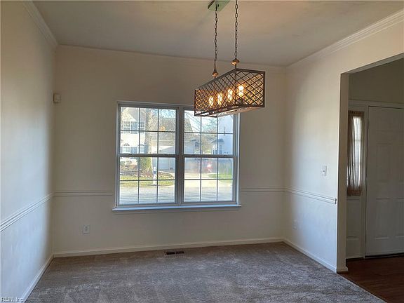 Beautiful home on Cul-D-Sac, Extra-large Primary Bedroom with a large sitting room. 4th bedroom is on 3rd floor and larger than normal. Primary bedroom sitting room can be converted to a 5th bedroom. Many new upgrades: New custom kitchen cabinets (soft close), granite counter tops, stainless steel appliances (dbl wide refrigerator) with ice and water dispenser, luxury vinyl plank (LVP) in kitchen and all bathrooms, new carpet throughout, new vanities with granite counter tops in primary and hall bath, brand new Heating & A/C system, new roof (less than 2 years old). New light fixtures in home. Location in close proximity to colleges, universities, major shopping centers and easy access to inter-state highway system for travel to adjoining cities. Short ride to Virginia Beach Oceanfront and North Carolina Outer Banks.