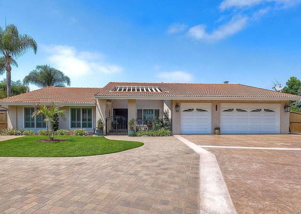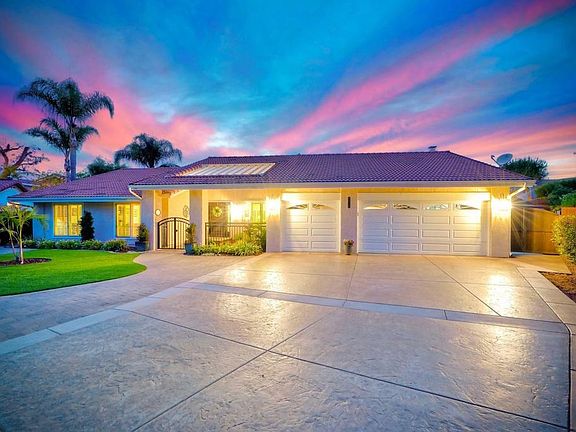 Welcome to this beautiful one-story home perfect for the homebuyer that wants move-in ready! Soaring vaulted ceilings greet upon entering the impressive custom front door through gated courtyard. Paid solar, with newer HVAC system. Luxury vinyl plank flooring throughout. Newer dual pane windows with custom plantation shutters in most rooms. Remodeled eat-in kitchen with high-end appliances, island with 6-burner Cafe stovetop, quartz countertops and beautiful soft close cabinetry. Walk-in pantry and inside laundry. All the bedrooms have ceiling fans and closet built-ins. The 3-car garage has plenty of storage including racks that hang from above. The built in BBQ area in the backyard is perfect for entertaining. Electric, retractable custom awnings allow you to decide how much sunshine you want to let in. The newer patio cover has 3 skylights for extra light. This cul-de-sac home sits on over 12,600 sq ft lot with R:2 zoning with potential to accommodate an additional dwelling. There’s a large shed in back for a workshop, craft room, workout area and more. A 4 hole putting green is perfect to practice your golf game. Drought resistant landscaping, new paver hardscape and synthetic grass. This home is meticulously maintained...Gorgeous inside and out!