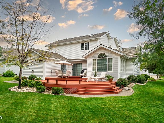 A truly one of a kind, BEAUTIFUL custom home in the highly coveted location of Country West can be yours! This home is fully custom and features one of the most gorgeous settings you're ever likely to find in Northwest Bismarck. To sum up this entire home in a word it would be ''spaces''. This home has so many unique spaces that any one of which could be your favorite new place to be all the time! Maybe its the custom office, the cozy living room with coffered ceilings, the MAIN FLOOR Master bedroom retreat, the bright and airy SUNROOM, the lower concourse living room with luxurious hand crafted woodwork, or maybe its the literal Irish pub thats in the house! I can't wait for you to discover all of it!