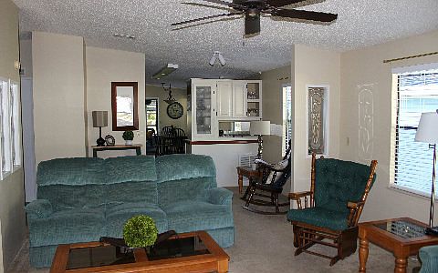 This furnished & equipped spacious 2/2 + den makes a wonderful full time or seasonal home with its 2 car detached garage and separate golf cart entrance. New roof & gutters in Feb 2014, new a/c Oct 2011, new dishwasher & microwave Oct 2013, freshly painted inside. This is a great community with 2 golf courses, clubhouse, exercise room, library, 2 pools, hot tub, shuffleboard, tennis courts & pickle ball.
