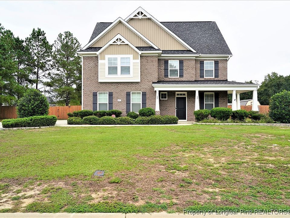 Fantastic 3 story Brick home in a country neighborhood setting. The large covered front porch wraps around to the side yard. Beautiful luxury vinyl plank flooring greets you as you enter into this 4 BR 3 1/2 Bath home with 2 bonus rooms (one that also includes a closet and could potentially make a 5th bedroom). The formal dining room offers a coffered ceiling and wainscotting molding. There is a decorative arched entry way from the formal dining room into the kitchen. This very functional kitchen features staggered walnut cabinets plus silver pulls, granite countertops, stainless steel appliances and a pantry. There is also a great kitchen island with pendant lighting above too. This open floor plan has the kitchen flowing seemlessly into the eat in area and then into the great room with gas log fireplace (Propane tank is currently being leased). The primary bedroom suite on the second floor is a great size and its primary bathroom includes a garden tub (with tiled accents), seperate shower, and huge walk in closet. The other three bedrooms are also on the second floor (with once again the potential for a 5th bedroom on the third floor when you consider the bonus room with a closet). The 3rd floor could make a perfect in-law suite given its layout! The back yard has a portion of the patio area that is covered and extra pads that are uncovered as well. There is also a 6ft. privacy fence and a storage building on a slab in the large backyard. This wonderful home is close to shopping, parks, and is a convenient drive from Fort Bragg or downtown Fayetteville!