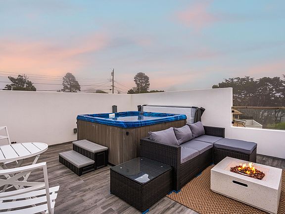 Experience breathtaking Pacific Ocean sunsets while enjoying a glass of wine from a brand-new (2021) 6-person hot tub. This luxurious feature is set on a custom-built, porcelain-tiled roof deck offering panoramic views from Pebble Beach to Santa Cruz. Keep your binoculars ready for whale-watching! Dry off and lounge on the roof deck sitting area next to our propane fueled fire pit. This extensively remodeled home is designed for both indoor and outdoor entertainment, promising an unforgettable living experience. The kitchen is a chef's dream, featuring a custom white porcelain farm sink, elegant white quartz countertops, stylish white subway tiles, and a large kitchen island that seats six. The master bedroom includes his and hers walk-in closets for ample storage. Essential appliances such as a 5-burner gas stove, oven, stainless steel refrigerator, washer, and dryer are included. The master bath boasts dual vanities and luxurious marble tile floors. Enjoy the coastal ambiance from two decks at the front and back of the house. French doors in the master bedroom open to a balcony with captivating ocean views. Inside, relax by the wood-burning fireplace, or gather around the backyard fire pit on the spacious concrete slab. Golf enthusiasts will love the beautiful 4-hole putting green. If you love to BBQ, enjoy the charcoal and gas grills! Convenience is just steps away with a 7-minute walk to nearby amenities like Starbucks, Safeway, Trader Joe's, Lucky, and various restaurants. The property also offers easy access to Highway 68 and is within walking distance to the Links at Spanish Bay golf course, Asilomar Beach, Pacific Grove High School, and Forest Grove Elementary School. Pets are welcome! The property is also only 1.2 miles from the Rip Van Winkle Open Space dog park. Please note, there is a tenant-occupied 2-bedroom, 1-bathroom accessory dwelling unit (ADU) with a separate entrance on the floor below the main house. The backyard fire pit and putting green are shared amenities, fostering a friendly and engaging atmosphere. **Fully Furnished** Owner covers the costs for landscape maintenance, sewer, and water. The tenant is responsible for gas, electricity, trash, and any additional utilities like internet and TV. Smoking is prohibited inside the property. Pets are welcome; small dogs. A non-refundable pet deposit of $500 per pet is required upon approval. Up to two pets are allowed, with any additional pets needing approval on a case-by-case basis. Parking is available on a spacious driveway and in a 2-car garage.