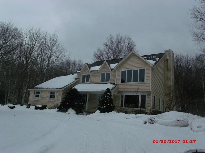Delightful Colonial Home in Sunny Location surrounded by a birch forest. Close to cross country ski trails and county land. Private back yard with deck, pergola and gardens. Large bright kitchen with breakfast bar, table area and walk-in pantry. Beautiful MacKenzie-Childs tile accents and on breakfast bar. Formal dining, spacious Master suite, fireplace, & circle drive, lower level is finished with bar and home theater area.