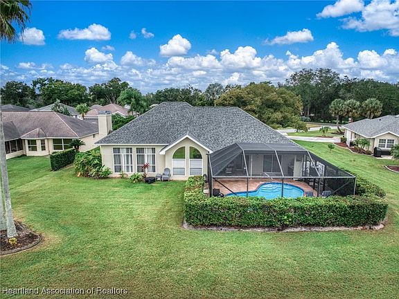 PRICED TO SELL!! BACKUP OFFERS ARE ENCOURAGED !! This beautiful POOL HOME is located on the 8th hole of the prestigious “Country Club of Sebring” community. Impressive crown molding, and 10’ vaulted ceilings add to the architecture features throughout. Take in the GOLF COURSE view while enjoying the fireplace in the family room. This split floor plan gives plenty of space and privacy. And the oversized Master Suite has its own private entry into the pool area. Upgrades in the Master Bathroom include an extra tall glass shower enclosure with beautiful tile walls and flooring added. Enjoy the gigantic Rainshower head, and all new bathroom hardware. New double vanities and resurfaced garden tub complete this private en suite. Enjoy this HEATED POOL all year round. Just resurfaced in 2024 and has a color changing LED light feature. KITCHEN has beautiful granite countertops and stainless steel appliances. Parking is super convenient with a long driveway to the 2 car garage with the separate golf cart garage door on the side. Other upgrades: new ceiling fans in pool patio area, low profile LED ceiling fans in two bedrooms. THIS COMMUNITY HAS IT ALL: Golf , Tennis, Pickleball, Community Pool and Restaurant. COME ENJOY COUNTRY CLUB LIVING AT ITS BEST!