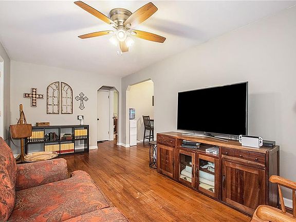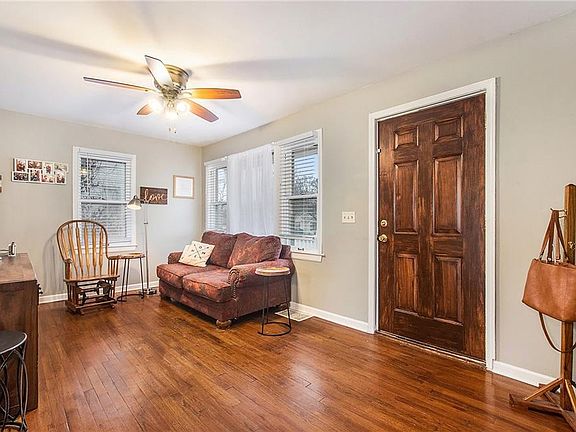 Discover the charm of this delightful Northland home! The quaint facade welcomes with a built-in basement garage and low maintenance vinyl siding. You’ll feel the warmth and charm that this home offers with refinished hardwood flooring and unique angled entryways into the dining space and hallway. Roomy laundry room right off the kitchen provides an option for extra kitchen storage/pantry space. New appliances include a dishwasher and oven/range with updated cabinet pulls. Lovely window over the sink looks out into the fenced yard! Both bedrooms offer a peaceful retreat with plenty of natural light, comfortable bed space and added ceiling fans. New bathroom vanity along with shiplap and fresh paint. Plenty of opportunity to enjoy great weather and entertain on the extended front porch, back deck with built-in seating or around the warm glow of the firepit. Storage shed tucked into the corner is perfect for lawn equipment and tool storage. Plenty of dining, grocery and retail options directly to the north & south with nearby Shoal Creek Trail. Good highway access to the city and surrounding communities.