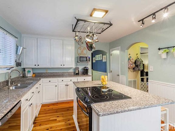 Your new home in Hapton Oaks! Granite countertops in kitchen, beautiful real pine hardwood floors throughout, fully updated guest bath, new whole-house gutters, a completely new duct system with MRV 10 filter system, and a newly screened-in back deck overlooking the freshly sodded backyard are just a few of the features of this North Raleigh oasis. Too many other updates to list here. Come see for yourself. Oh yeah...did we mention the Beer Fridge?!