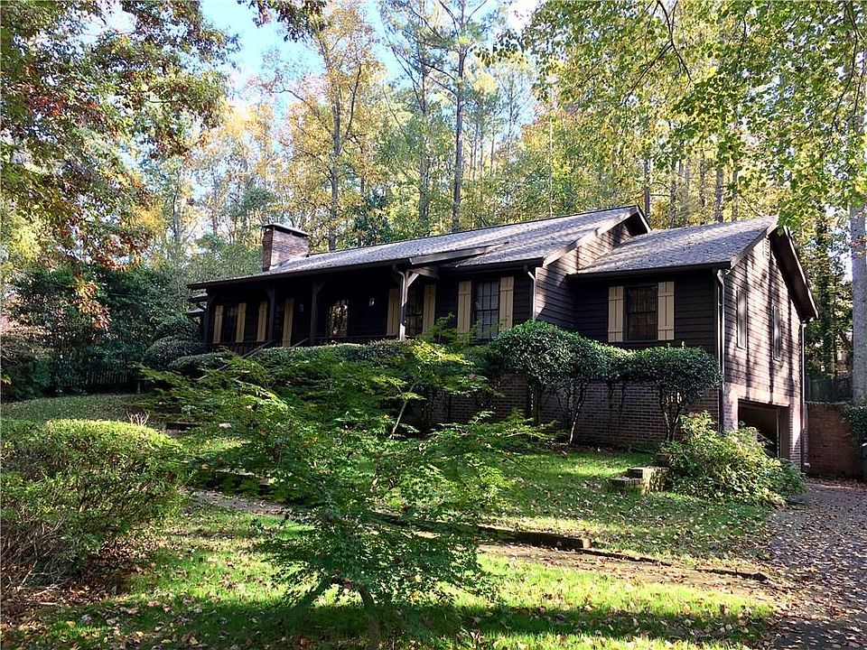 Charming Home with Renovated Kitchen on a Large Private Lot in East Cobb! Full finished basement with recreation room and bedroom/bathroom! Relax on the screened porch or by the fire in the large stone fireplace in the family room that features rustic wood flooring and exposed wood beams.