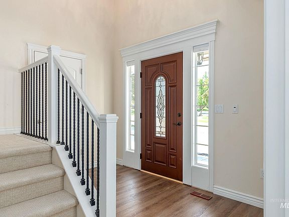 Landscaping that only time can buy frames this South Meridian beauty, just 1 mile from the Meridian Road on-ramp. This better than new 3,391 SF home features 4 bedrooms, 3.5 bathrooms, a main-level office, and an upstairs bonus room. The original owners have elevated every detail with thoughtful updates and high-end finishes. Brand new carpet and flooring just installed. The fully renovated kitchen is a chef’s dream with Sub-Zero and Wolf appliances. The primary suite offers a spa-like retreat with dual walk-in closets. Step outside to your private resort-style backyard with a heated pool, tiki bar, new pool equipment, and a waterfall accented by tiki torches. Mature trees and lush landscaping provide privacy and tranquility, creating the perfect backdrop for entertaining or quiet evenings at home.