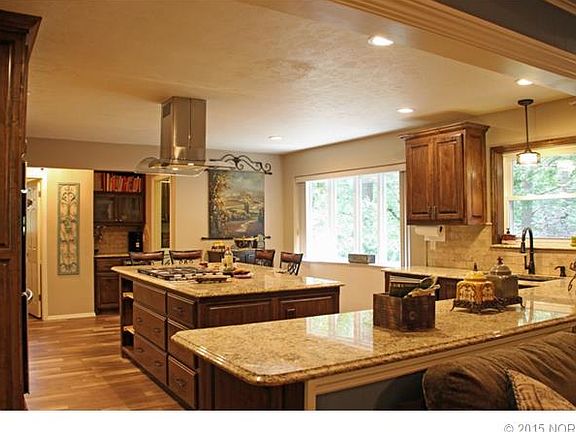 Gorgeous, open concept, 3 bed, 2 bth, 2 liv, fpl, over sized 2 c gar with storm shelter! New kit w/granite, huge island, ss 5 burner cook top and dbl ovens. Tree lined streets in Kenilworth w/view of golf course across the street and the woods behind!