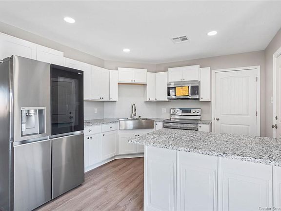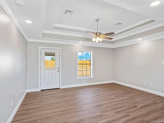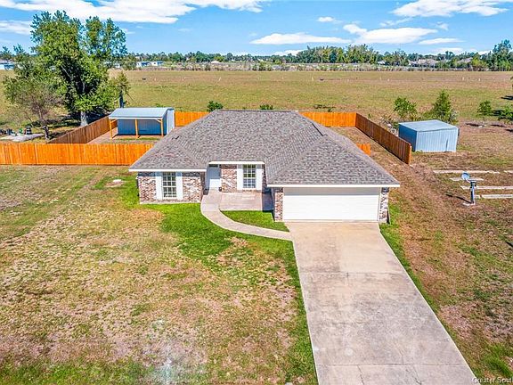 Now available! Renovated in 2023 this is a move-in ready 3 bed 2-bathroom total square footage 2010. Located in flood zone X, where flood insurance is typically not required. Situated on just under .4 of an acre. It is on a quiet dead-end road. You'll get all the perks of country living while minutes from town. Layout is an open and split floor plan with flowing natural light. Interior you will find neutral cool tones and luxury vinyl plank throughout. The kitchen boasts new cabinetry, an oversized stainless-steel sink, 5 ft granite island with ledge for seating, a new LG refrigerator, oven/stove, and microwave. There is a separate dining area and garage access from the kitchen. Near the garage access you will find a 6x5 laundry room. The living room and primary bedroom have trayed ceilings and crown molding accents. Exterior amenities include a 6 foot privacy fence with double gate access and fresh stain, a two car garage, 11 by 10 covered back patio, 20 by 16 workshop with electricity supplied and an attached 20 by 11 awning, and a utility shed that houses the septic system and new 550 ft water well. Schedule your private viewing today. All measurements are estimated.